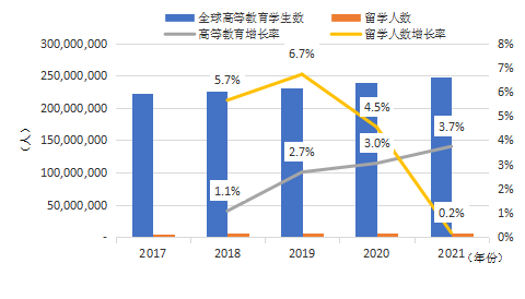 尽管疫情影响全球,但根据UNESCO数据显示,2000年到2021年,全球国际学生数量从211万增至639万,增幅接近两倍。