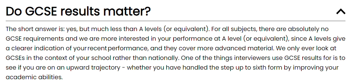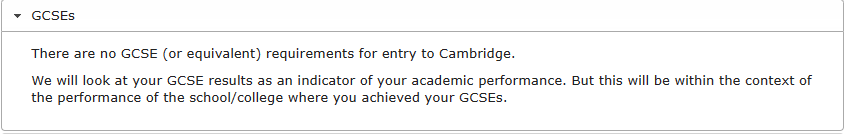 不同的学院对于GCSE/IGCSE的要求也不同,例如“老大哥”Peterhouse学院表示会通过申请者的GCSE/IGCSE成绩考察申请者是否在学业上有所进步。