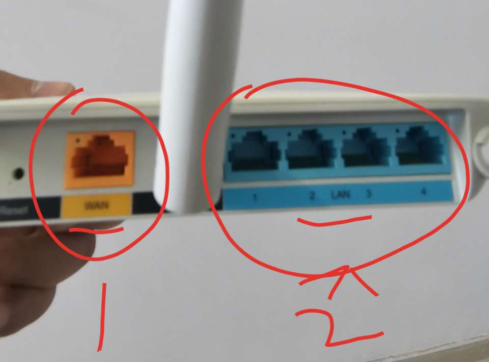 (2)图片标号2端口下方有英文字母LAN,一般会并排一起好几个端口,此接口为输出口,即从此路由器连接电脑的接口。