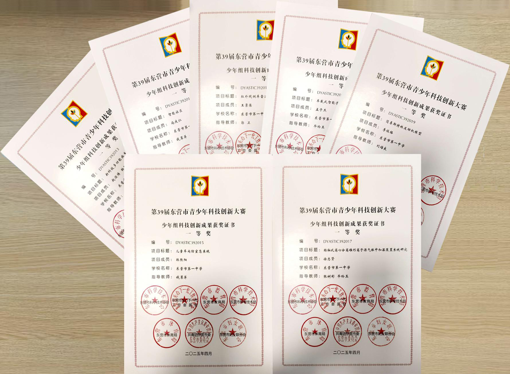在第39届东营市青少年科技创新大赛中,我校喜获“东营市科技教育创新学校”称号!我校尚庆仁等7位同学荣获市一等奖,董一平等2位同学荣获市二等奖,科创作品《智能社区》、《新科技多功能病床》经市级选拔、省级初审被推荐参加省级决赛。