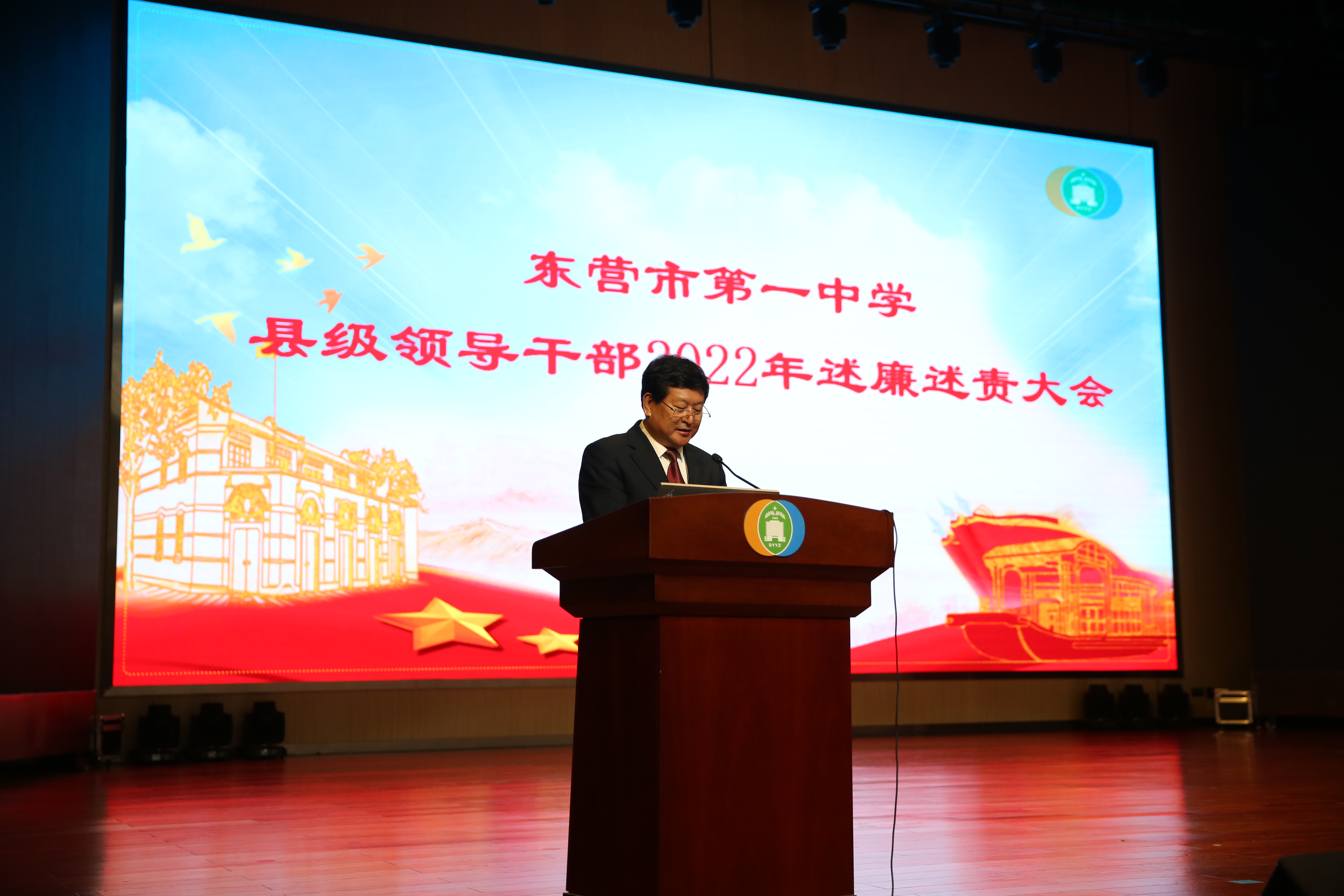 为进一步加强对党员领导干部的监督,推动党风廉政建设党委主体责任和纪委监督责任的落实,东营市第一中学2022年党员领导干部述廉述责会议于10月16日在学校大礼堂召开。
