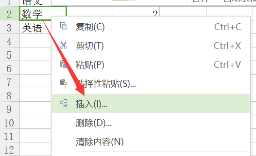 4、如果想要在A1和A2之间插入一个数据要怎么做呢?首先鼠标选中A2,右键选择“插入”