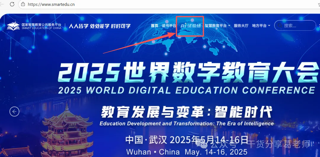 2、进入国家智慧教育公共服务平台点击上端的AI试验场。