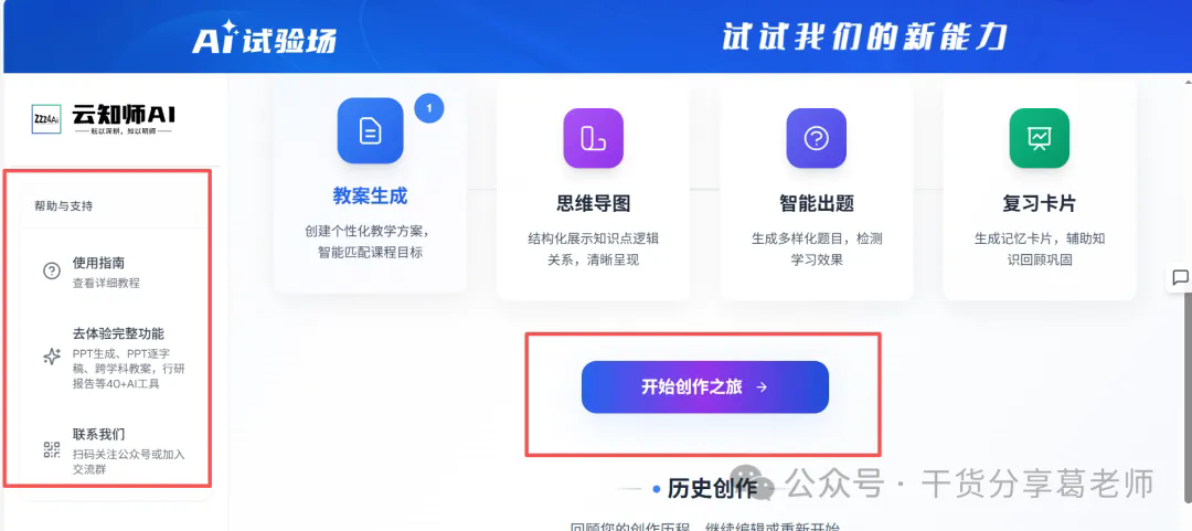 4、进入云知识AI界面后我们可以在右侧点击使用指南,先学习一下如何进行全链路AI备课,学习完后点击开启设计之旅。