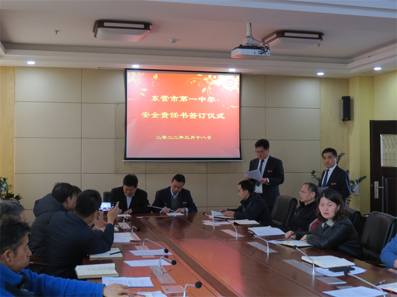 3月18日,学校组织召开了2022年度全校安全工作会议,会议由李士刚副校长主持。会上史校长依次与学管处、教务处、总务处、高三级部的董海峰、李衡斌、董玉武、陈 杰四位主任,签订了《2022年学校安全目标管理责任书》,之后安保处康述志主任宣读了《东营市第一中学关于调整学校安全工作领导小组暨安全工作检查小组的通知》。
