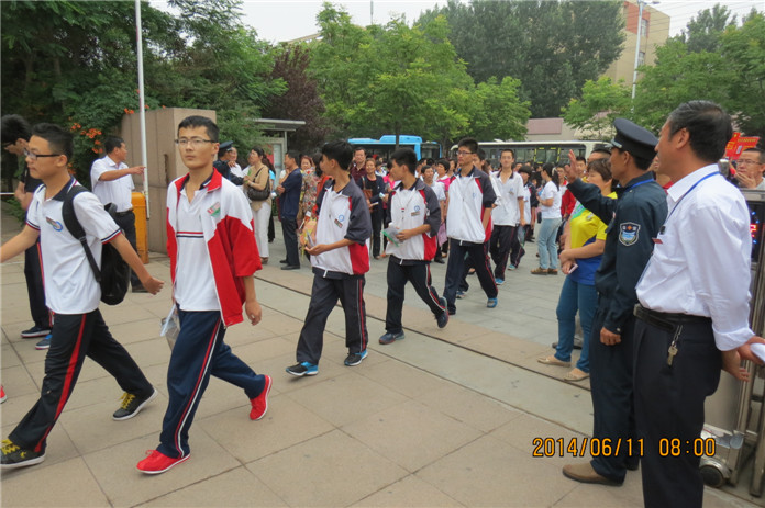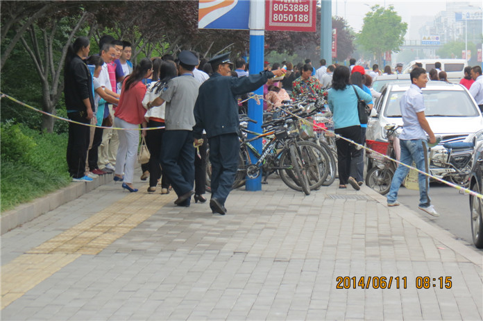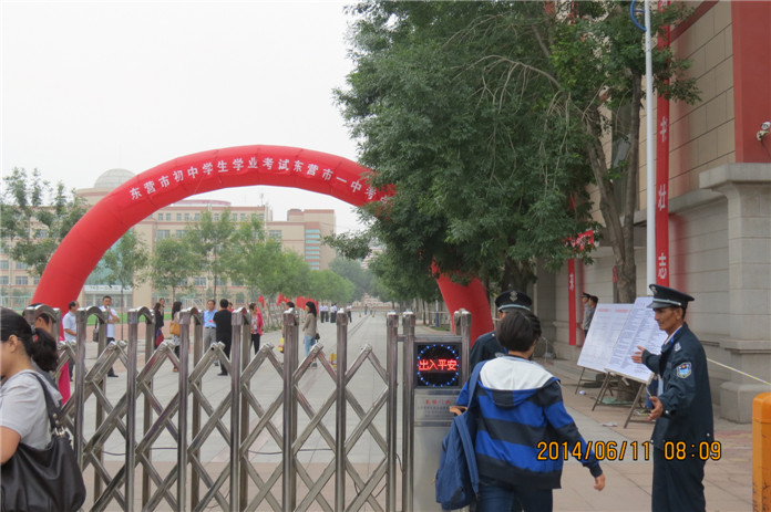 6月11日市一中开始了今年的中考考试工作。由于考场临近公路,交警支队在学生入场前对运河路一中南邻路段部分进行管制。因担心家长及社会人员在考试期间说话声音过大影响学生考试状态,入场后学校便组织对路北的家长们进行劝导。在大家的理解与支持下,校园南门外的环境井然有序。