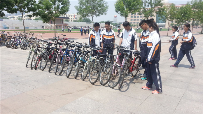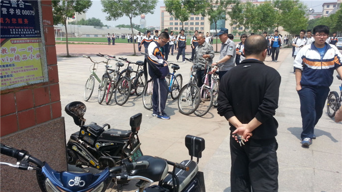 为了继续巩固学生自行车的秩序管理,今天安保处对高二学生自行车中没有挂牌的车辆和夹杂在高二停车区的其他车辆进行了整治。