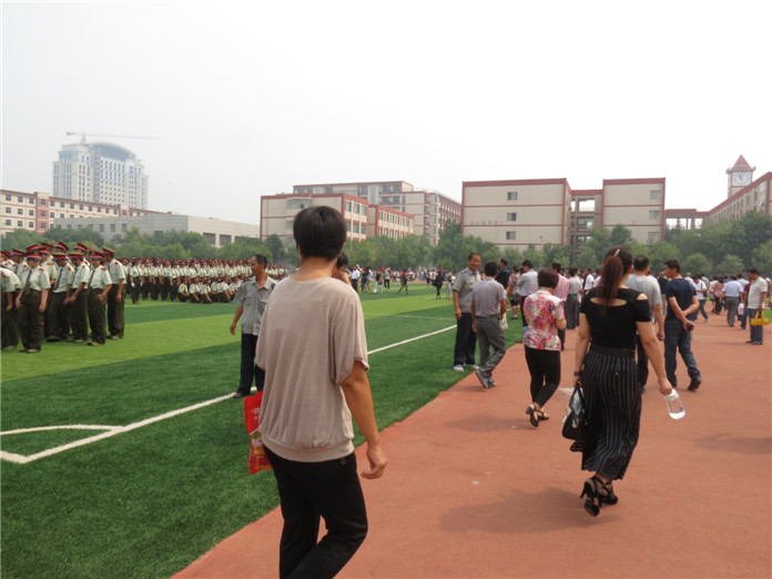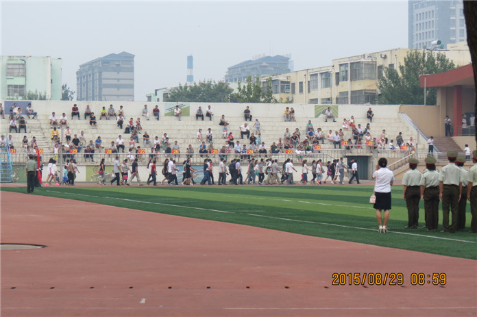 8月29日上午,东营市一中2015级高一新生军训闭营仪式在学校运动场隆重举行。