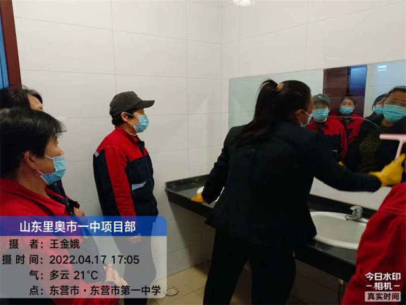 4月15日安保处康述志主任组织召开保洁保安工作会议,会上康主任提出要进一步提高保洁工作的质量与水平,在巩固日常保洁的基础上全面开展精细化保洁工作,从细微处入手,要求“力度不减,标准不降”全力做好校园保洁工作。为此,东营里奥物业服务公司本着“责任全覆盖,落实无死角”的要求,里奥物业市一中项目部于4月17日组织保洁人员开展了保洁技能专项培训,将保洁服务工作落实到每个细节上。