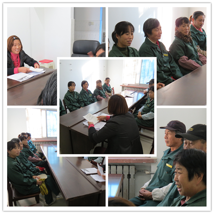 今天下午,王金娥和曲利梅老师组织保洁员老师召开保洁例会。会议对前一段时间大家努力工作的效果进行了表扬,同时针对季节变化校园清洁需要注意的问题进行了讨论和任务布置。