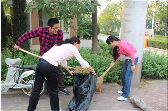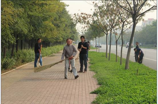 金秋十月,秋风送爽。为了清洁环境,美化家园,创建全国文明城市,根据市文明办的安排,东营市一中工会于10月12日下午组织高一20名青年教师,到胜利大街(金辰路至北一路段)参加义务劳动,在活动中高一教师踊跃参加,经过一下午的紧张劳动,整条街道洁净美观、焕然一新。