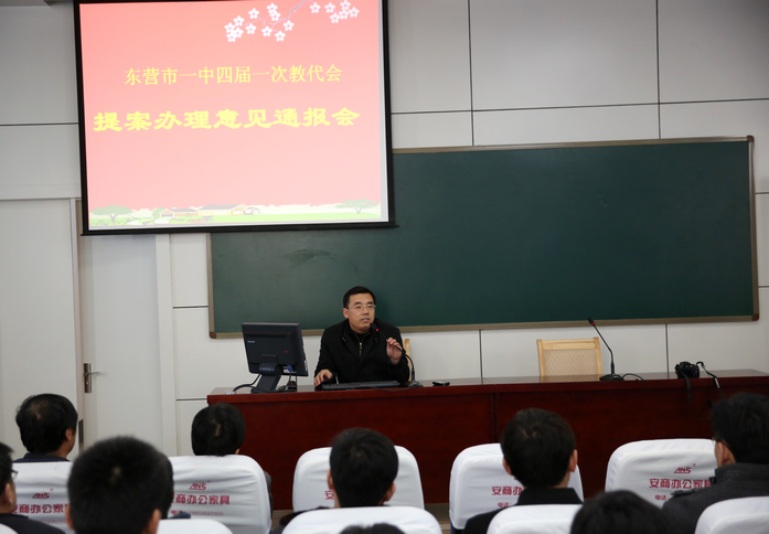 收到提案后,学校领导非常重视教代会提案办理工作,史本泉校长先后多次主持召开校级领导班子会议、校长办公会议专题研究教代会提案的答复和办理工作。史本泉校长高度肯定了我校教职工参政议政的热情和能力,并且庄重承诺:包括“改善办公条件与环境”、“及时配备、维修或更新投影仪等电教设备”、“丰富教职工业余文化生活”、“班主任培训学习提高”等在内的一系列关系到学校发展和教职工切身利益的提案,在不违反国家、省市相关政策的前提下一定落实到位,其他需要时间解决的问题也会尽最大努力、以最快的时间解决和完善。