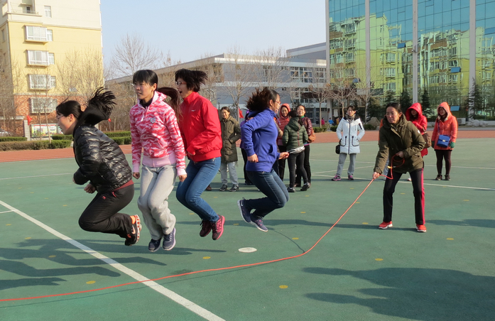 3月6日下午,阳光明媚,早春的风还带着一丝寒意,东营市教育工会在东营市春晖小学举办了市直教育系统庆“三八”女教职工趣味运动会,我校共派10人参加,此次活动比以往更注重了趣味性和团体性,个人赛有自行车慢骑、心心相印,团体赛包括跳绳比赛、袋鼠跳,在市一中全体队员的努力拼搏下,荣获团体三等奖。
