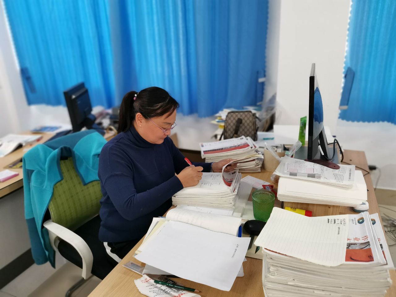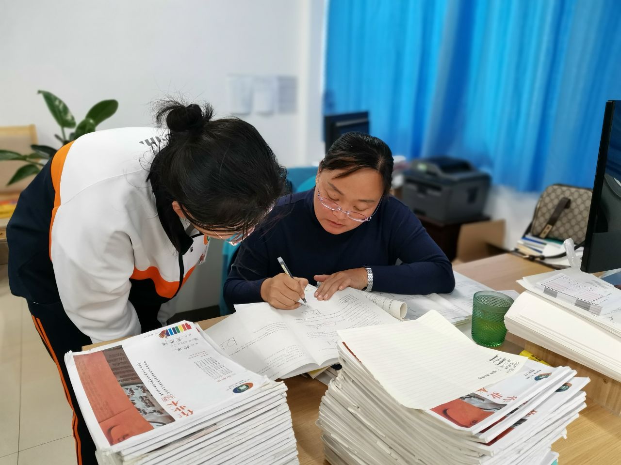 2019年高考后,原本以为可以休息一下,调养一下自己的身体,但是因为工作安排的需要,她在身体还没有完全恢复的情况下,再次承担奥赛班的教学工作,从暑假的预习辅导,到开学后平时每周末的加课强化,从自己单独备课出题,到协助学科组完成其他日常工作,她都尽力做到最好。学科组内为老教师分忧,为年轻教师指路。