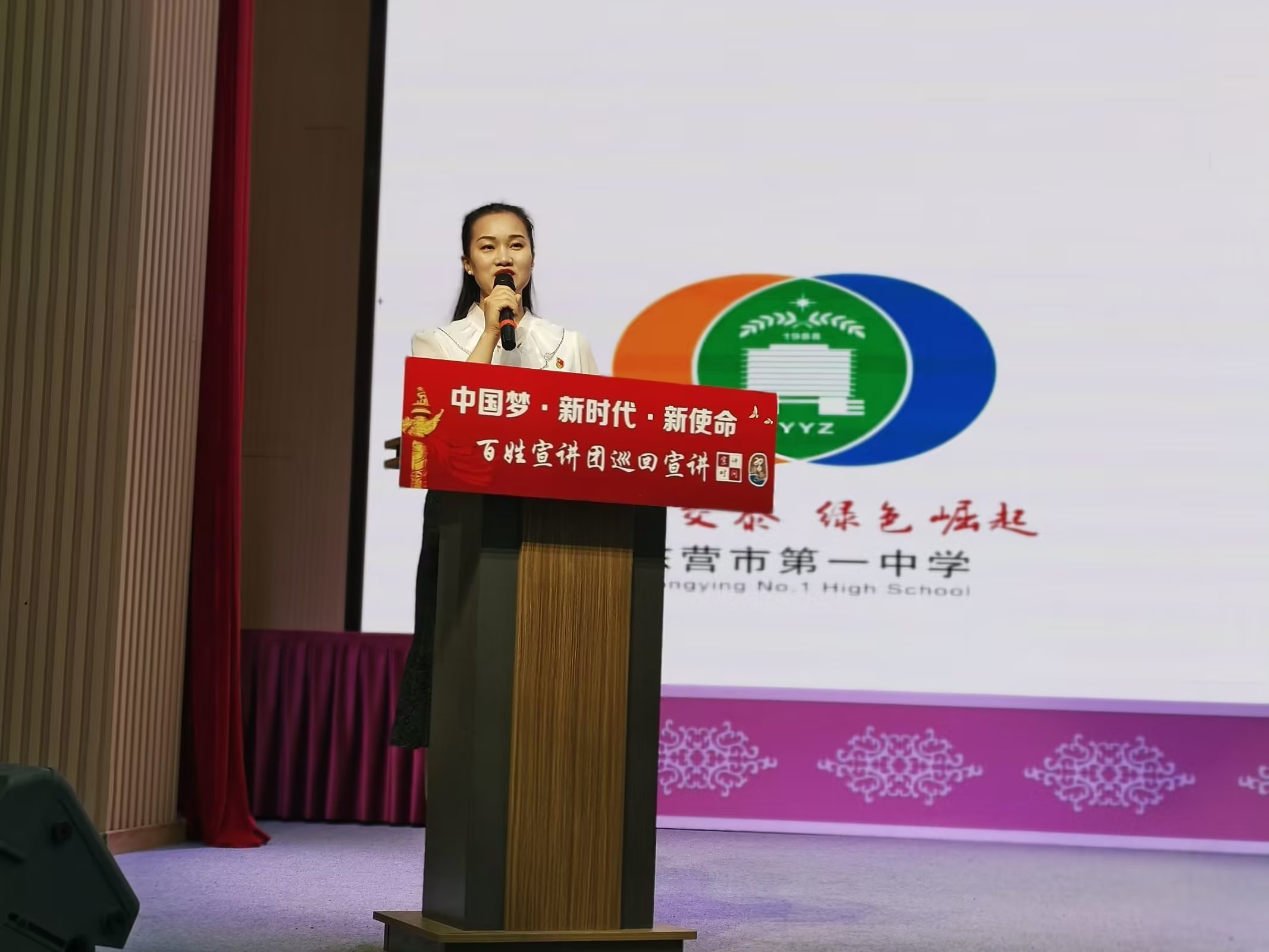 在市一中的校园里,随处可以听到老师们尽职尽责舍小家顾大家、勇于奉献的故事。喜萍老师曾说:“咱们老师们都太敬业了,真想把他们的故事讲给所有的人听!”盼望着,机会就真的来了。2023年4月底,东营市教育工委举办百姓宣讲比赛,刘老师受学校党委委派,参加这次比赛。她接到通知后积极准备,从确定素材、撰写稿件、选择背景音乐、制作PPT到最终定稿,历时半个月时间,最终于5月13日以绝对优势取得了东营市教育系统宣讲第一名的优异成绩。6月初,她又代表市教育工委参加东营市百姓宣讲比赛,本次比赛共有来自市直各单位以及各县区宣传部推送的27个选手参加,刘老师最终取得第7名的好成绩。她宣讲情绪饱满,情感表达到位,讲述故事感人至深,同时被聘为东营市委宣传部宣讲团成员。后来,受东营市委宣传部邀请到东营市市直单位以及各县区单位巡回宣讲24场。每场宣讲下来,老师们的感人事迹都会让观众流下感动的泪水,很多观众听完宣讲后都表示,市一中的老师太不容易了,太敬业了,俺一定让孩子努力学习争取考上市一中。通过她声情并茂的宣讲,社会上更多的人了解了市一中,了解了市一中的老师。