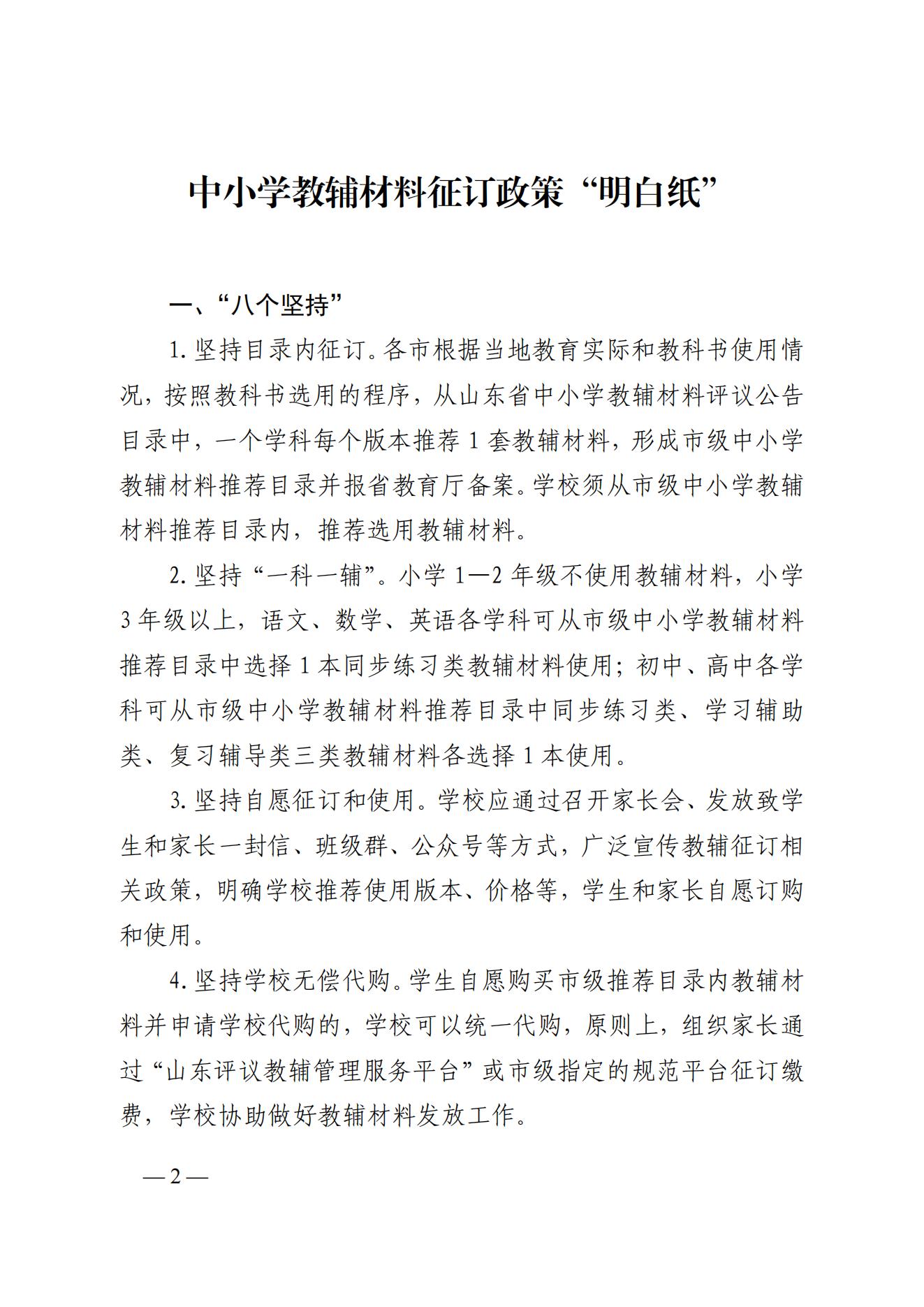 中小学教辅材料征订政策“明白纸